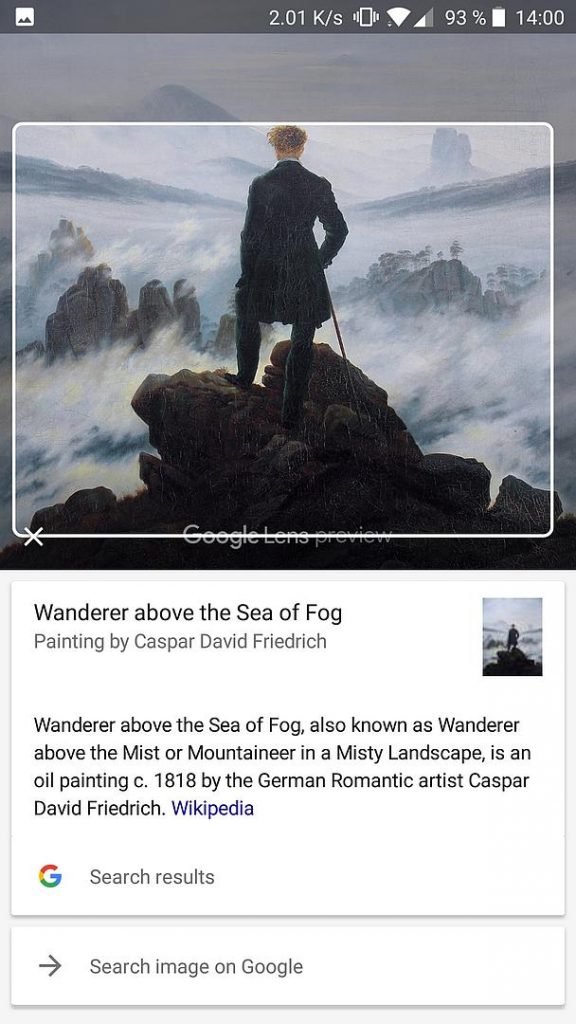 Google erkennt nicht nur, von wem ein Gemälde gemalt wurde, sondern stellt auch alle Informationen, die Wikipedia über ein Bild und den Maler hat, zur Verfügung. (Bild: Screenshot Google Lens)