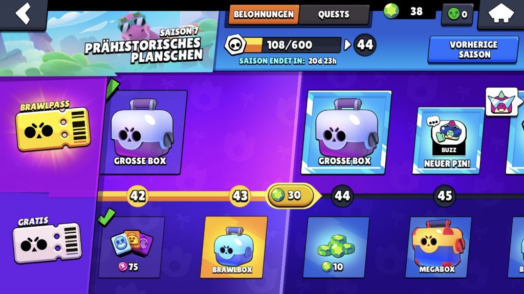 In kurzen Spielrunden gibt es viele kleine Erfolge abzustauben. Ob Pokale, Münzen oder Marken – hier haben sich die Macherinnen und Macher von Brawl Stars über die letzten Jahre einiges einfallen lassen. Zum Beispiel Quests, kleine Aufgaben, mit denen man sich schnell neue Goodies freischalten kann. So wird es nicht langweilig und man bleibt eher dran. Denn selbst wenn man in einer Spielrunde nichrt viele Pokale sammelt, so gibt’s vielleicht genug Marken. Irgendwas gewinnt man immer. So bleibt man motiviert dabei.