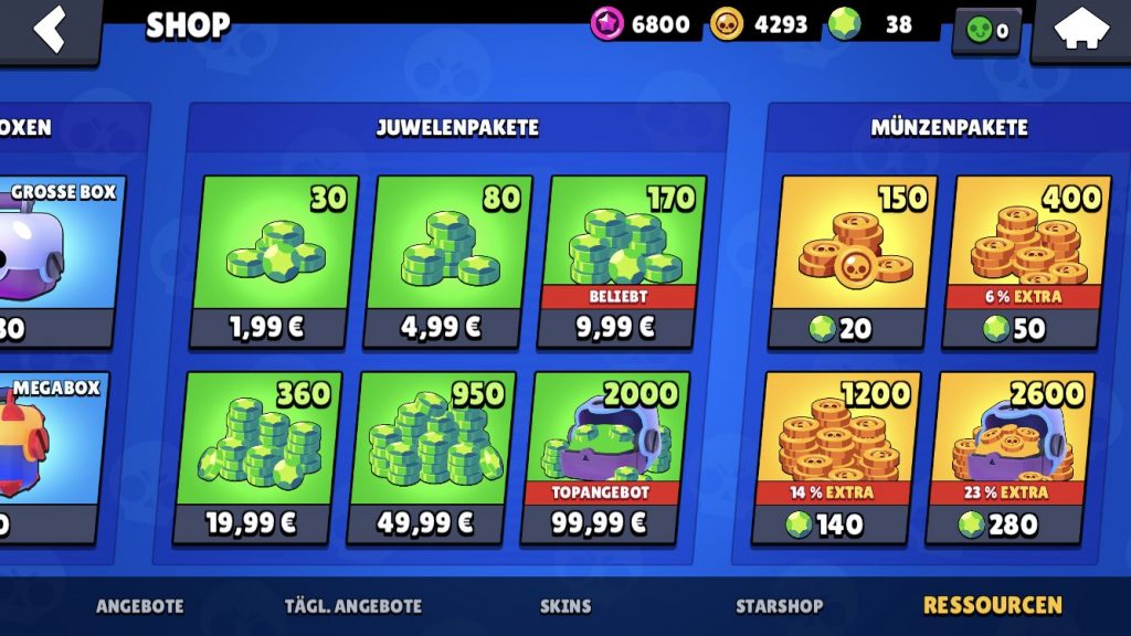 Bei Brawl Stars kann man sich auch was kaufen – wie bei fast jedem Handygame. Schließlich verdient Brawl Stars unter anderem durch genau diese sogenannte In-Game-Käufe. Der Trick ist, dass die Beträge nicht zu hoch sind. Kaum einer möchte gleich 20 oder 30 Euro in einem Spiel ausgeben. Doch 1,99 oder 4,99 klingt erschwinglich. Dabei können sich auch solche kleinen Beträge ganz schön summieren! Daher ist es ratsam, sich selbst einen festen Spielbetrag pro Monat oder Schulhalbjahr vorzunehmen. Durch Guthaben-Karten kann man darüber auch besser die Kontrolle behalten, als wenn man eine Kreditkarte hinterlegt. Dafür kann‘s übrigens auch ziemlich Ärger mit Mama oder Papa geben!