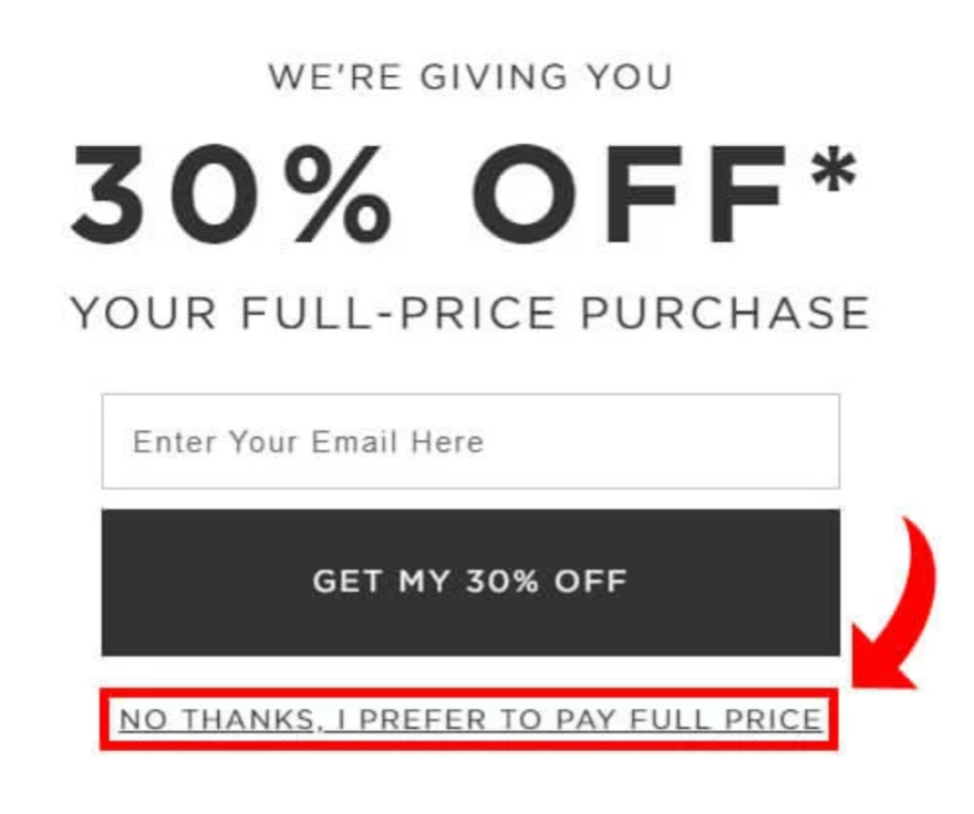 - Confirmshaming: Es gibt dann zwar die Möglichkeit, etwas abzulehnen, aber stattdessen wird dir vermittelt, dass du dich dann schämen müssest.