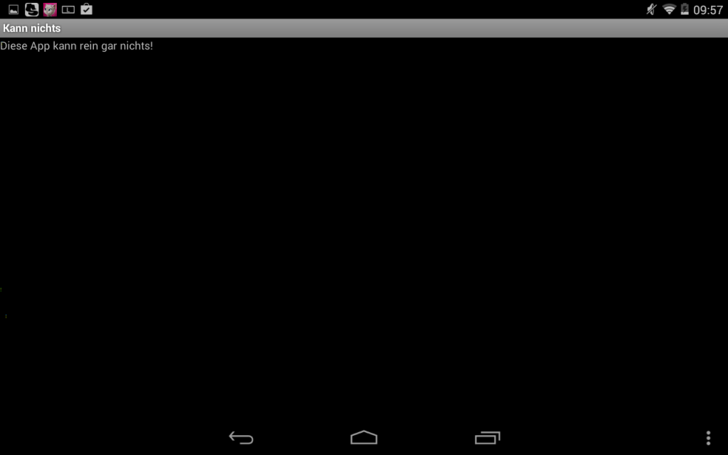 Das absolute Highlight aller sinnlosen Apps ist eine App, die ihrem Namen vollkommen gerecht wird: „Kann nichts“ hat nicht mal einen Icon am Startmenü und liefert ausschließlich einen farblosen Bildschirm. In diesem Fall fällt die Beschreibung also etwas kurz aus – Diese App kann absolut nichts. Leider haben nur Android-Geräte damit das Vergnügen.