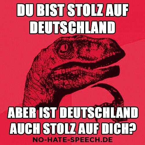 Der Dino macht sich Gedanken über die wirklich wichtigen Dinge des Lebens und philosophiert über verschiedene Themen. Dieses Meme kann zum Beispiel eingesetzt werden, wenn mutmaßliche Nazis oder Rassisten stolz auf Deutschland sind. Er hinterfragt ironisch, ob Deutschland auch stolz auf diese Menschen ist.