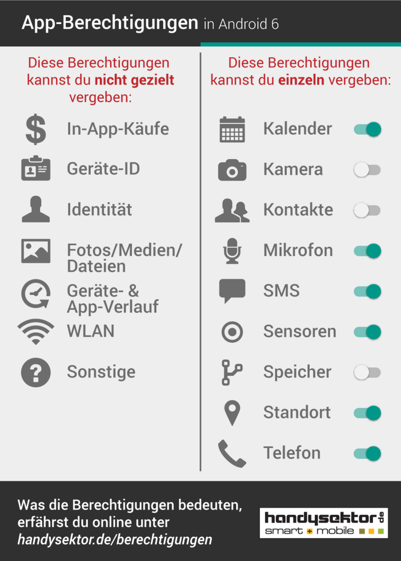 Handysektor-Infografik: App-Berechtigungen in Android 6